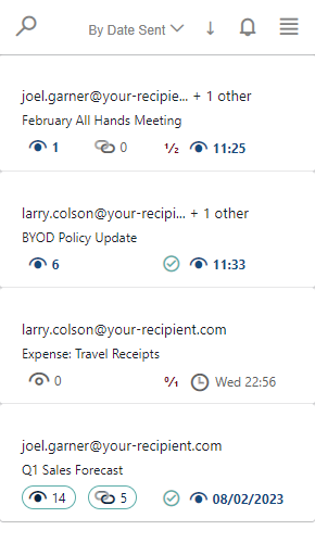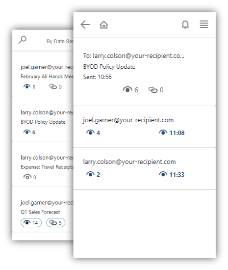 A simple extension for Microsoft Outlook, Aftersend gives you insights on every email you send from your mailbox on desktop and mobile* devices. Read receipts can be declined, but Aftersend delivers near real-time viewing insights every time the email is opened, forwarded*, replied to* or a link is clicked.