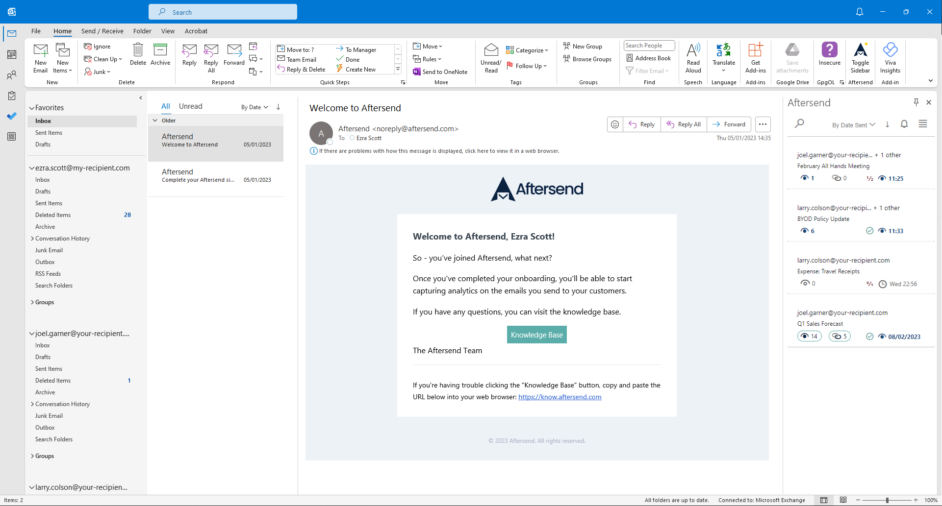 Aftersend is designed to give you more information about your emails. Whether you’re an accountant chasing payments or a sales executive following up leads, if you send emails in Outlook, then this tool is for you.
